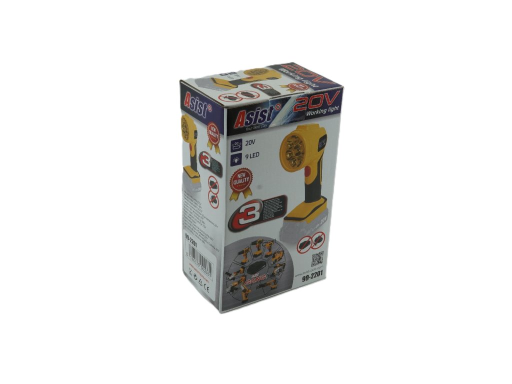 Aku pracovní světlo 20V ASIST 99-2201 – řada AKU GANG! Kompaktní, odolné a vždy po ruce. 9 výkonných LED vytváří široký a rovnoměrný kužel světla, otočná hlava nasměruje svit přesně tam, kde ho potřebujete, a nízká spotřeba zajistí dlouhou výdrž na jedno nabití. Ideální do domácnosti, dílny, garáže i na drobné opravy kolem domu – bez kabelů, bez omezení.