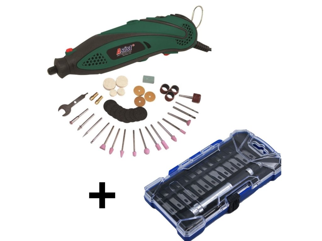 Asist AE3C13DN-BMC-3 - mini přímá bruska + sada vyřezávacích nožů + příslušenství 40 ks