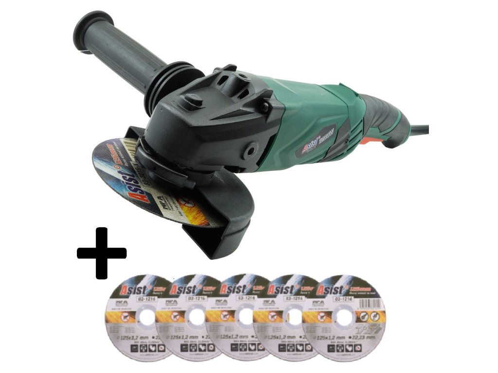 Asist AE3U120DN-2-SAD - úhlová bruska s regulací, 1200 W / 125 mm + 5x kotouč ZDARMA