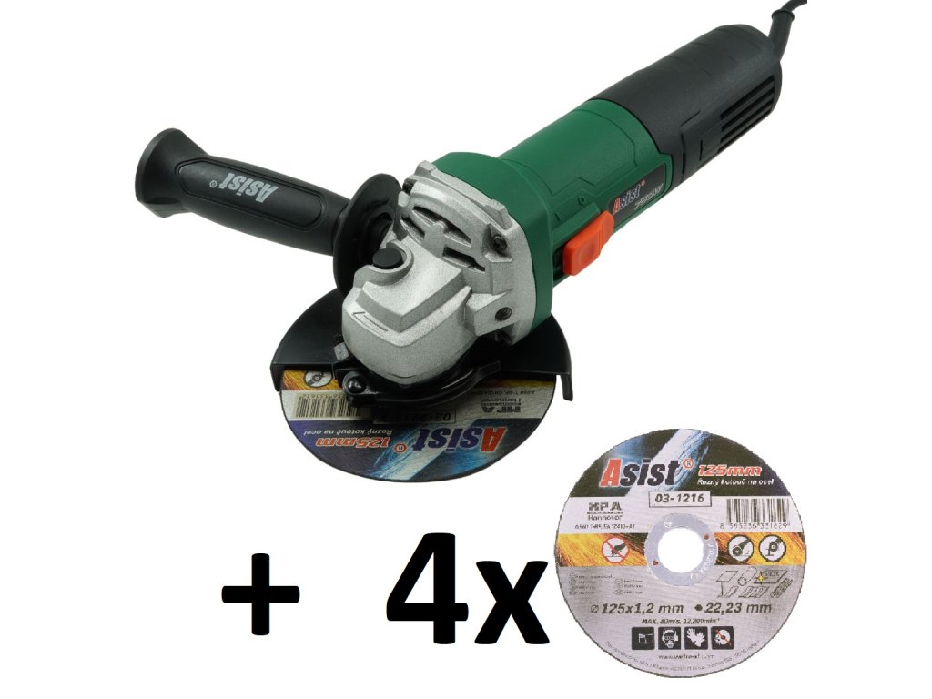 Asist AE3U75DN-1-SAD - úhlová bruska, 750 W /125 mm + 4x kotouč ZDARMA