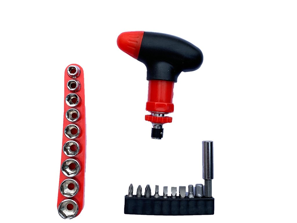 T-šroubovák sada 20 dílů je univerzální pomocník do dílny i domácnosti. Robustní rukojeť ve tvaru T umožňuje vyvinout vyšší krouticí moment s menší námahou, magnetický držák spolehlivě fixuje bity i nástavce a standardní vnitřní šestihran zajišťuje rychlou výměnu a širokou kompatibilitu. Sada kombinuje bity, nástrčné ořechy a T-rukojeť tak, abyste zvládli montáže, opravy i jemné úpravy s maximální přesností.
