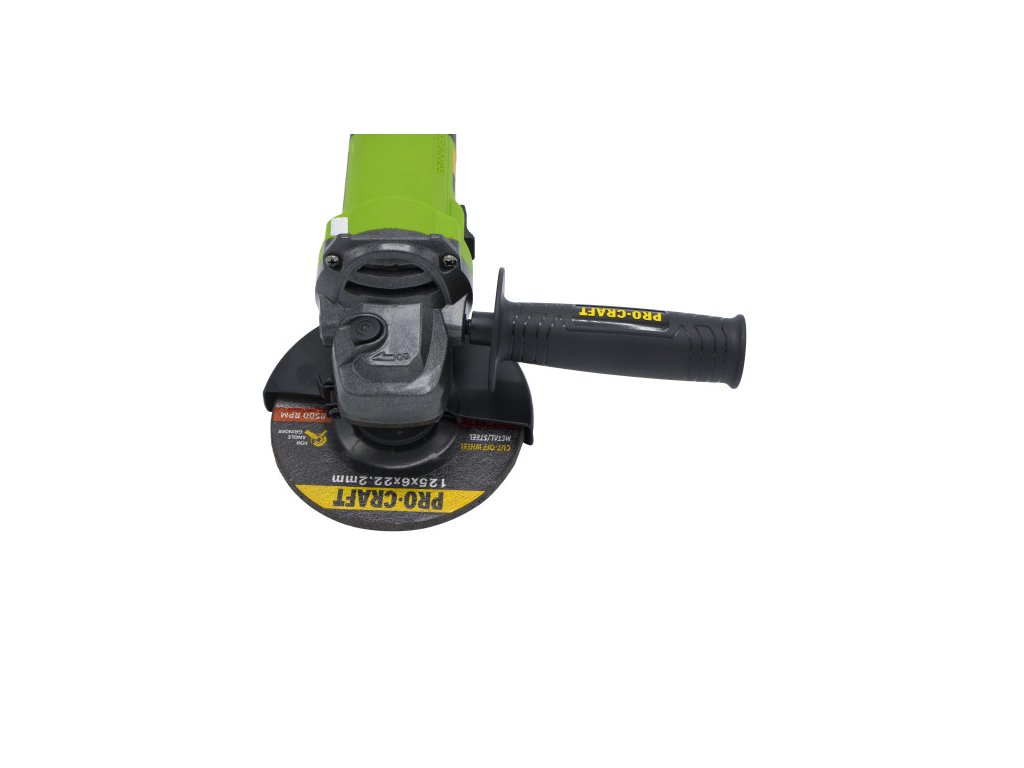 Procraft PW1550 - úhlová bruska + rychloupínací matice RM14, 10x řezný kotouč CD125x1.0b v boxu
