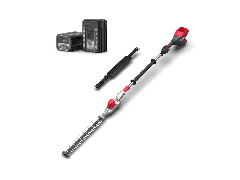 - Profesionální bateriový plotostřih s dlouhým dosahem a kloubovými dvojitými pístovými noži o délce 51cm a o celkové délce 2,2m
