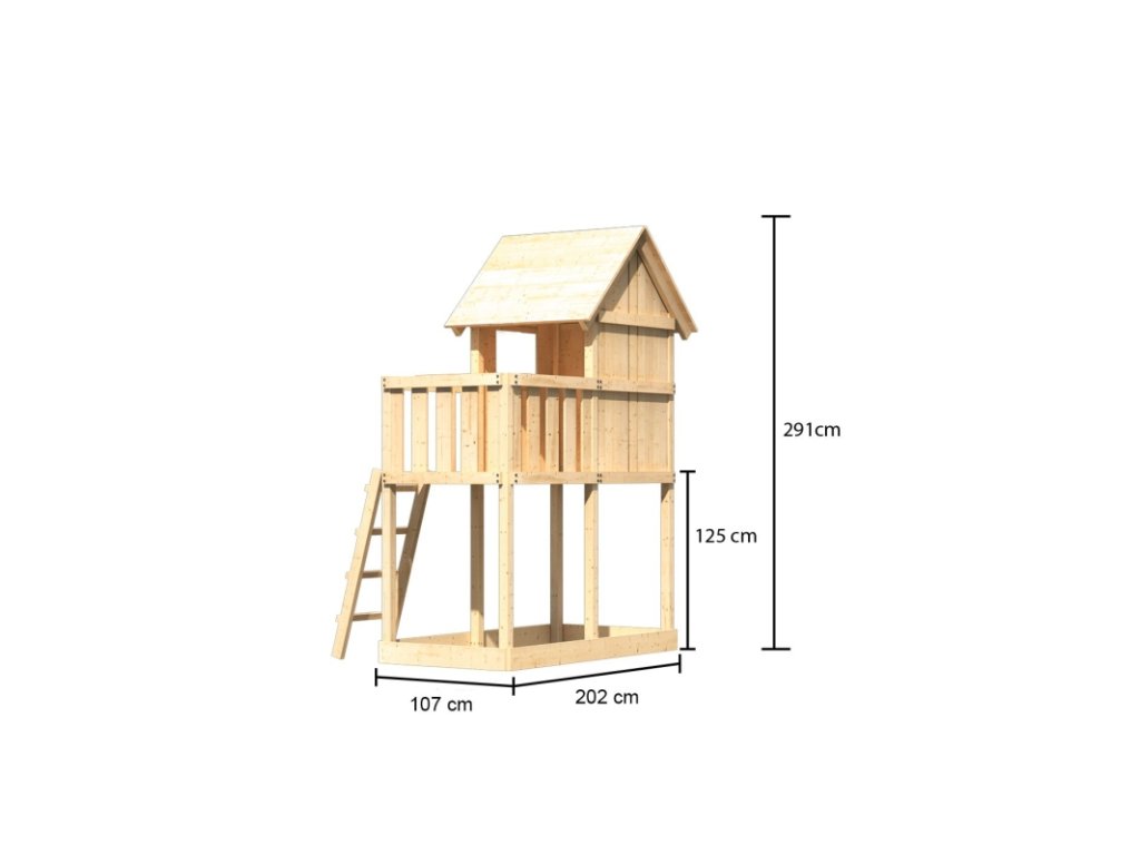 Dětské hřiště KARIBU FRIEDA poskytuje dětem spoustu možností ke hrám. Nabízí vše k tomu, aby děti mohly prožít veškeré své hrací fantazie. Stejně jako u všech našich dětských hřišť i u modelu KARIBU FRIEDA používáme výhradně to nejlepší přírodní smrkové dřevo. Hřiště má nosné sloupy o tloušťce 68 x 68 mm, stěny a podlahu z dřevěných profilů o síle 18 mm (systém pero / drážka). Terasa s domkem se nachází ve výšce 125 cm. Naše dřevo pochází ze vzdáleného severu Evropy a je chemicky naprosto neošetřené. V důsledku toho je prosté všech známých problematických látek. Díky výšce plošiny nabízí hřiště KARIBU FRIEDA dětem dokonalý výhled na zahradu. Sedlová střecha je vyrobena z dřevotřískových desek. Hřiště je standardně vybaveno robustním dřevěným žebříkem se 4 příčkami a pískovištěm pod věží. I tento výrobek má samozřejmě certifikát TÜV Nord ověřující bezpečnost výrobku (GS) podle DIN EN 71-1, DIN EN 71-3, DIN EN 71-8 a AfPS GS 2014.