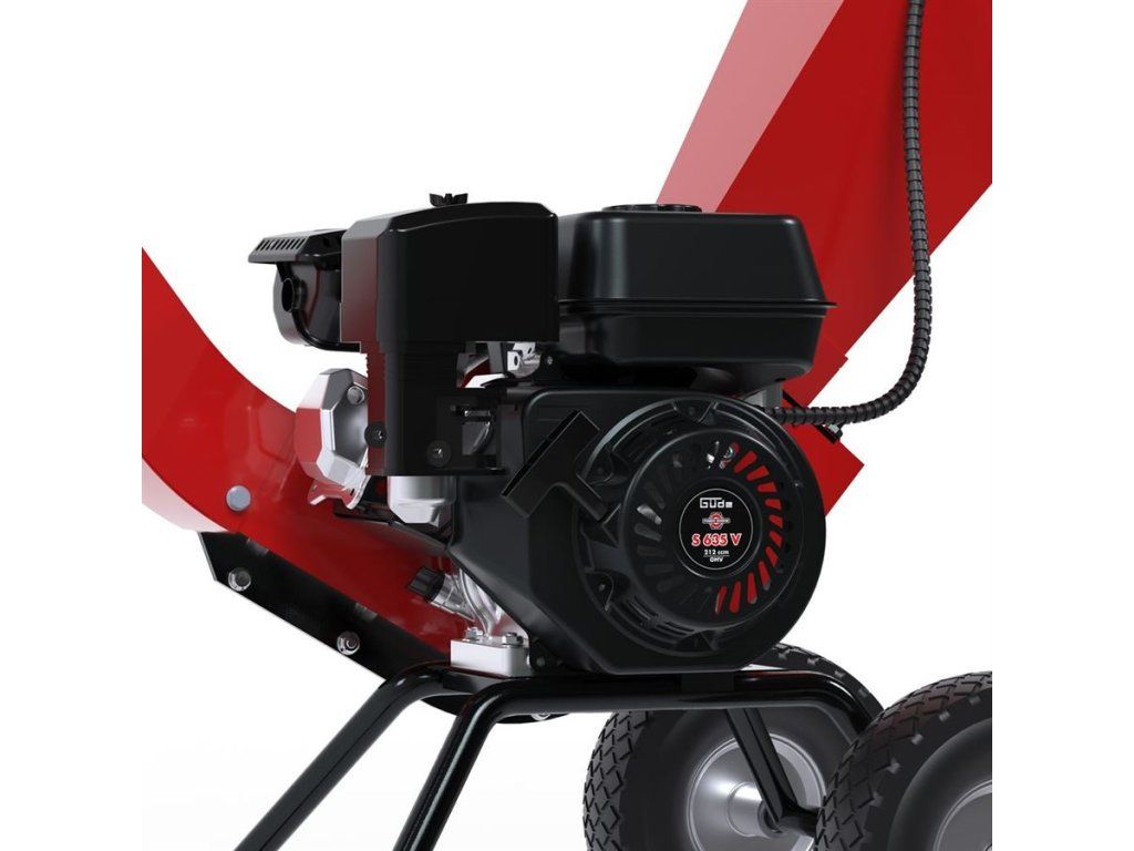 • Výkonný benzínový drtič Güde, určený k drcení dřevnatého zahradního odpadu.