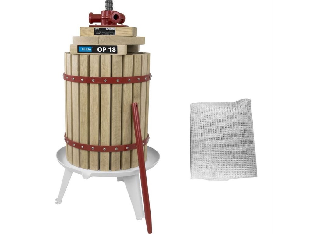• Ruční lis GÜDE, určený k domácí výrobě moštů nebo ovocných šťáv.