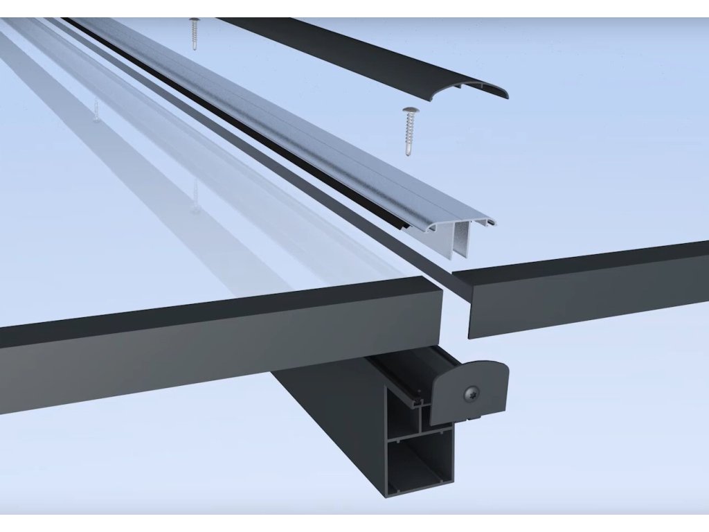 - polykarbonátové desky se připevňují pomocí přítlačné hliníkové lišty a šroubů, krycí lišty jsou v barvě pergoly
