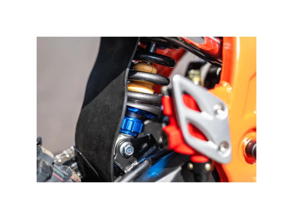 Kryt motoru, který chrání výkonný motor o síle 11,7 kW (16 HP) Je dalším prvkem, který přispívá k odolnosti a spolehlivosti tohoto stroje. Tento kvalitní kryt nejen chrání motor před nečistotami, kameny a jinými překážkami během jízdy v terénu, ale také zajišťuje lepší chlazení a delší životnost motoru. S výkonem 16 HP poskytuje motorka dostatečnou sílu pro náročné terénní podmínky i svižné zrychlení, zatímco ochranný kryt udržuje motor v bezpečí i při extrémních výkonech.