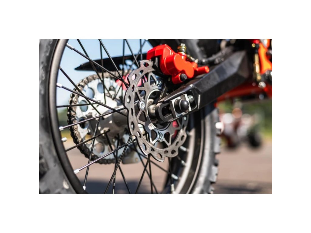 Pitbike je vybaven hydraulickými kotoučovými brzdami na obou kolech, což zajišťuje vynikající brzdný výkon i při vyšších rychlostech. Přední kolo o velikosti 19" a zadní 16" poskytují výbornou ovladatelnost a stabilitu a zároveň vynikající trakci. Manuální čtyřrychlostní převodovka, elektrické CDI zapalování a možnost jak nožního, tak elektrického startování dávají jezdci absolutní kontrolu nad strojem za všech podmínek.