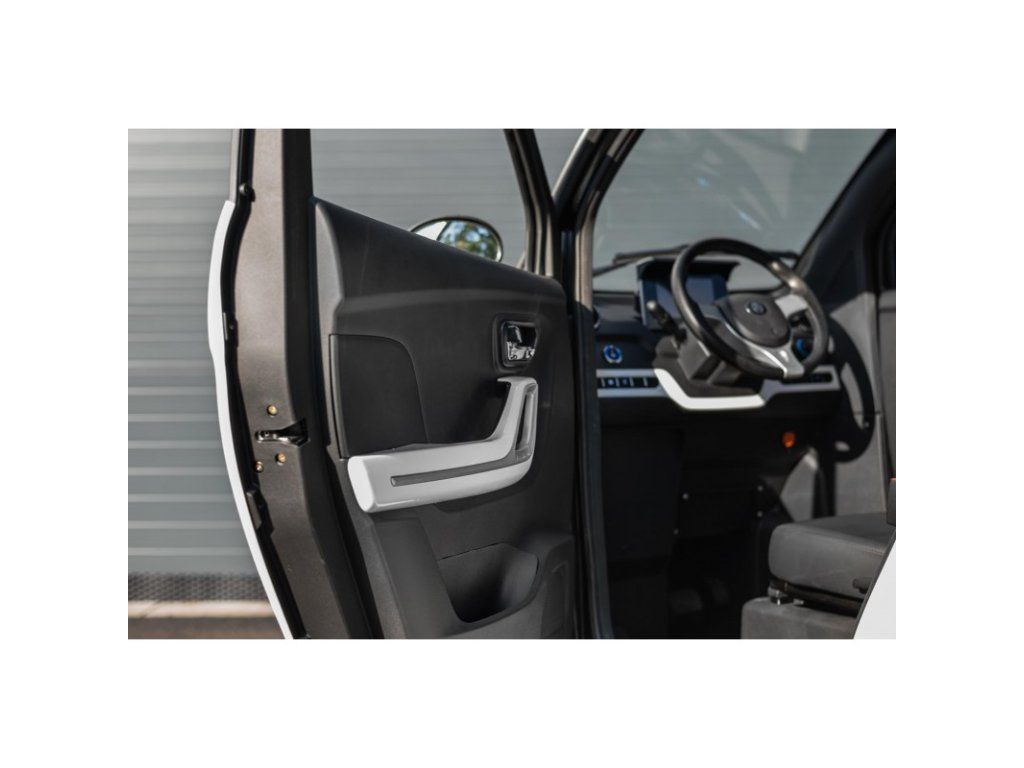 Interiér elektromobilu Leramotors e-car E4 je prostorný a pohodlný pro dvě osoby, což z něj činí perfektní volbu nejen pro každodenní cesty po městě, ale i pro delší výlety. V nabídce je i individuální řešení výkonnějších baterií pro větší dojezd, aby si mohl vybrat každý podle svých potřeb. Společnost Leramotors s.r.o. nabízí své produkty s maximální výbavou. Součástí vozidla jsou i stylové koberečky do interiéru, které nejen že přidají vozidlu eleganci, ale i prakticky chrání podlahu před nečistotami. Snadno udržovatelné a designově sladěné koberečky povyšují interiér tříkolky na komfortní prostor, kde jezdíte s radostí každý den. Barva karosérie navíc přirozeně přechází do detailů interiéru, což prostoru dodává harmonii a působivý styl. Tento sjednocený designový prvek podtrhuje luxus a důkladnost zpracování každého prvku. Elektromobil Leramotors e-car E4 je připraven nejen na ekologickou jízdu, ale i maximální komfort a styl na všech cestách.