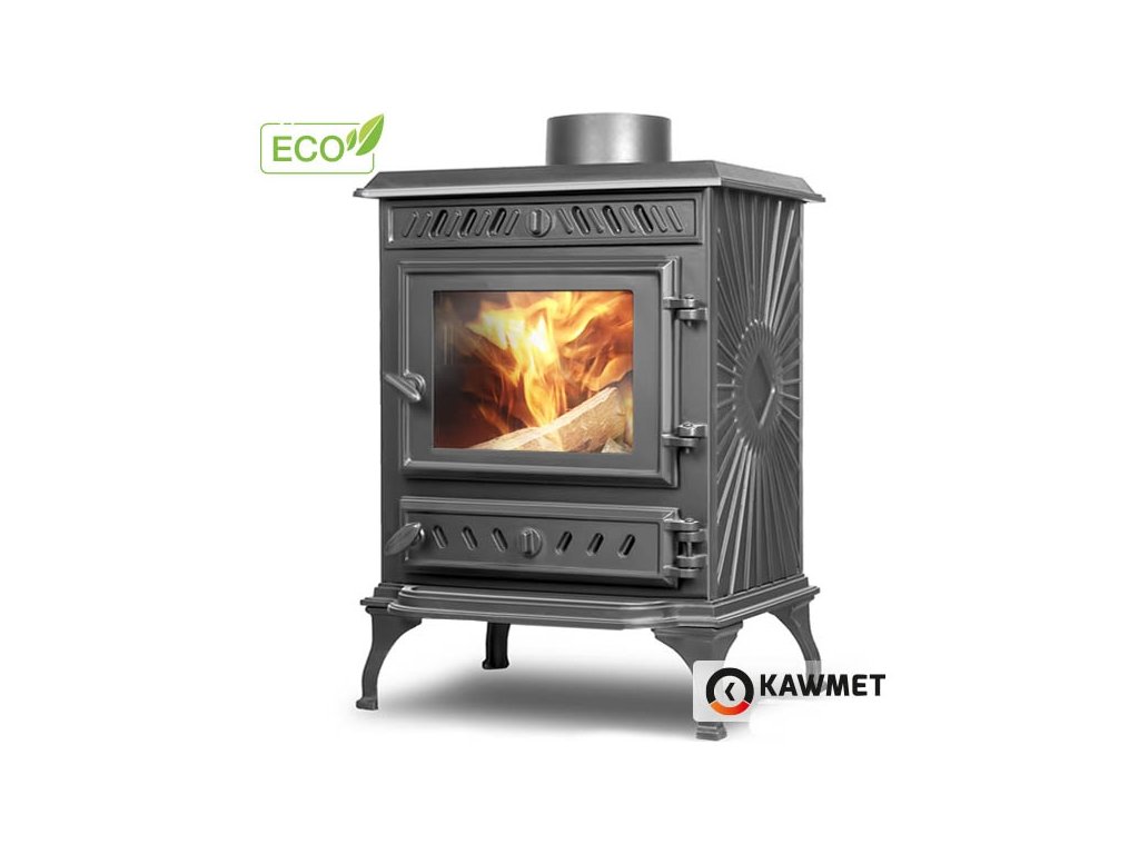 Krbová kamna z šedé litiny pro vytápění obytných prostor. Jednoduchý design a velké prosklené okno ze žáruvzdorného 4mm skla pro dokonalou atmosféru při pozorování plápolajích plamenů.