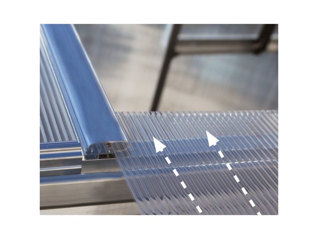 • Unikátní systém snadného nasunutí polykarbonátových panelů do hliníkových profilů bez použití přídavných zajišťovacích prvků