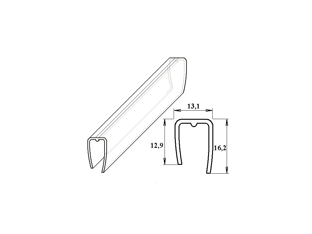Ukončovací U-profil z průhledného polykarbonátu pro sílu desek 10 mm. Ukončovacím U-profilem (PVC nebo PC nebo AL) se musí uzavřít otevřené konce komůrek, aby se do nich nemohl dostat hmyz a nečistoty.