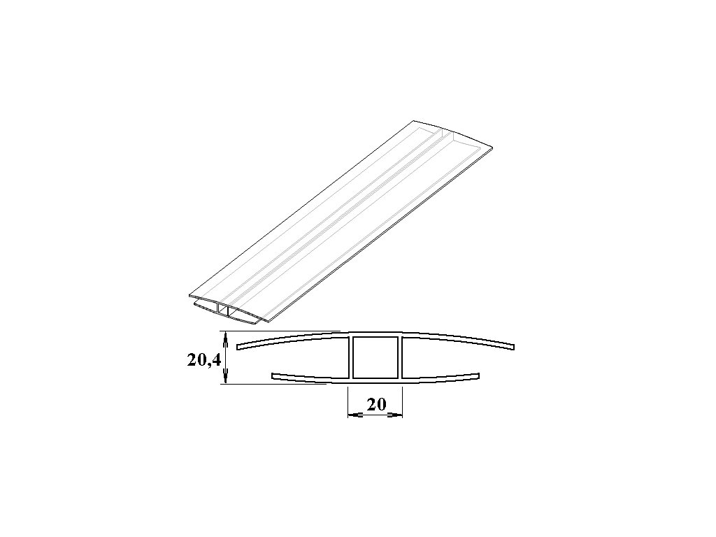 Spojovací H-profil z čirého polykarbonátu pro spojení dvou desek. Pro sílu desky 16 mm, délky 2, 3 a 6 m, s UV filtrem.
