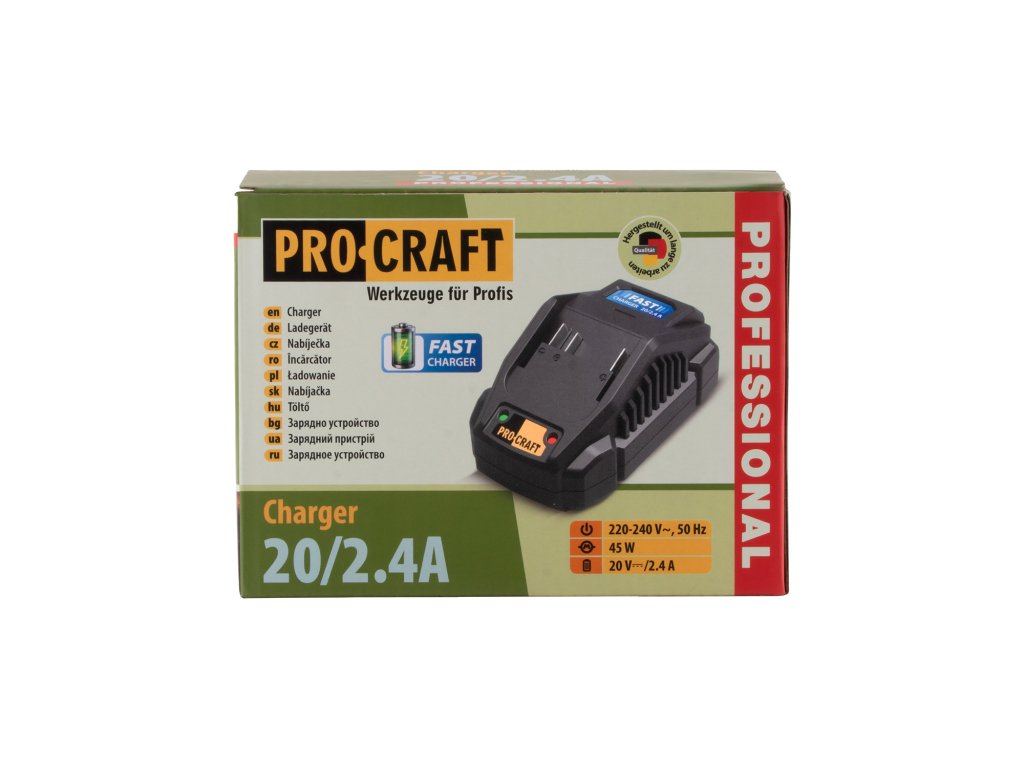 Nabíječka Procraft 20/2.4 je nepostradatelným doplňkem pro všechny uživatele 20V aku nářadí Procraft, kteří hledají bezpečné a spolehlivé nabíjení.