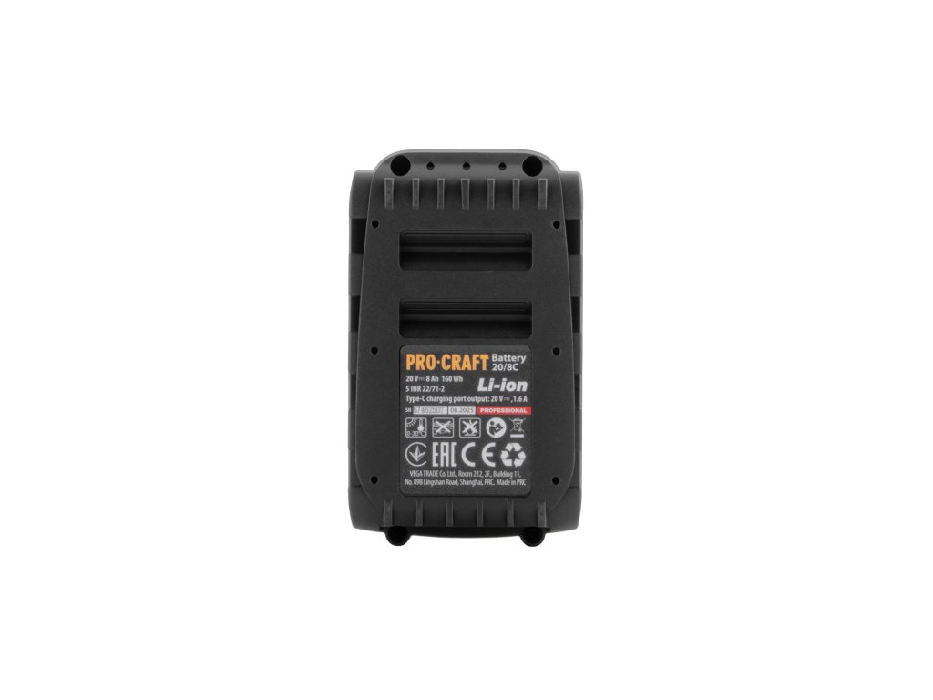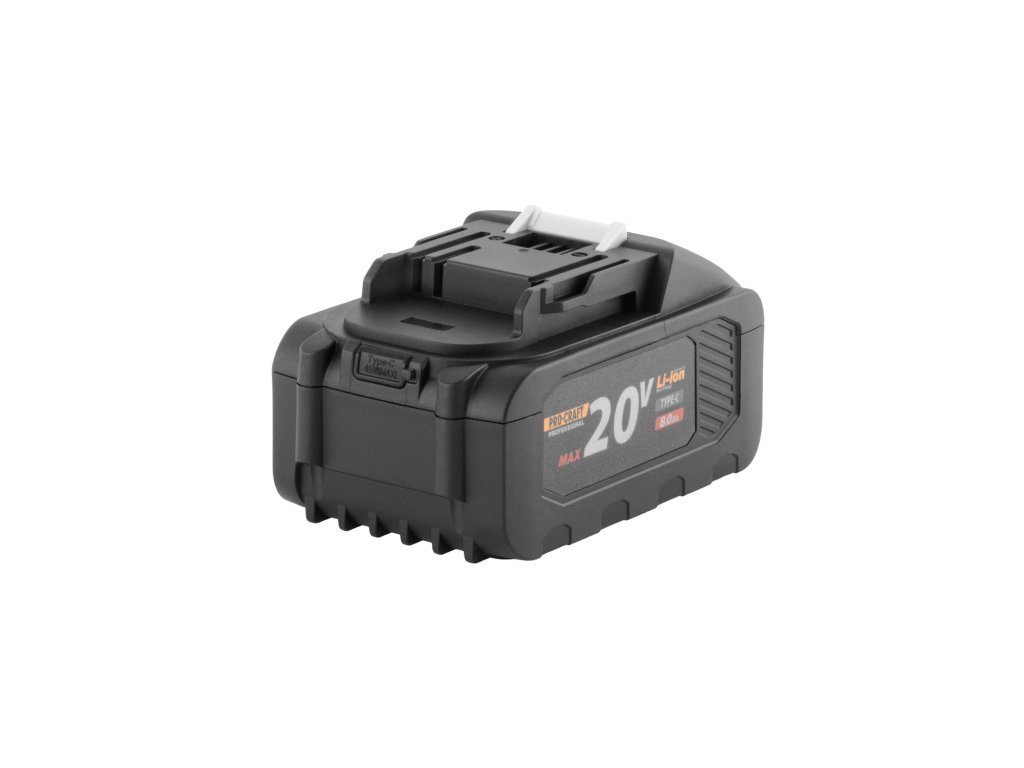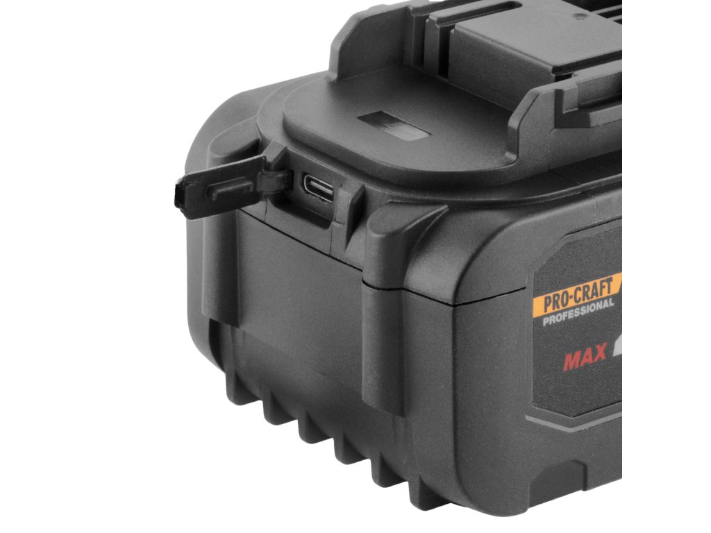 Akumulátor Procraft 20/8 představuje novou generaci baterií pro 20V platformu Procraft. Nabízí kapacitu 8 Ah, která poskytuje ideální rovnováhu mezi hmotností, výkonem a dobou provozu. Nově je vybavena USB-C portem s funkcí Power Delivery 45 W, takže ji lze nabíjet přímo přes USB-C nebo ji využít jako powerbanku pro nabíjení telefonu a další elektroniky.