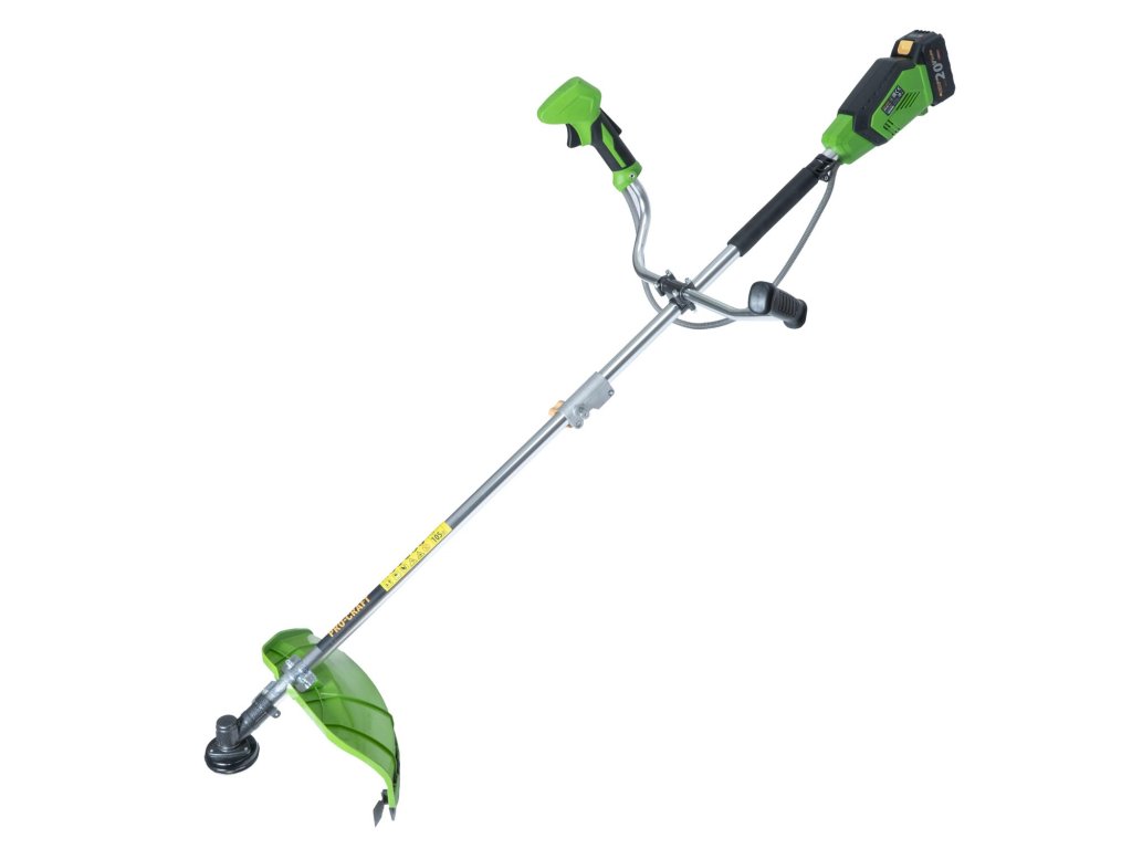 Akumulátory 20 V, 4 Ah: Křovinořez je napájen 2 akumulátory s kapacitou 20 V a 4 Ah, což zajišťuje dostatečnou výdrž pro delší práci.