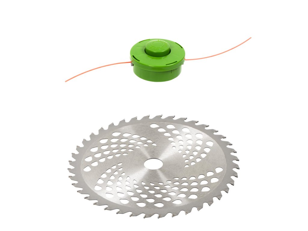 Strunová hlava a kovový kotouč: Křovinořez je vybaven strunovou hlavou pro efektivní sekání trávy a kovovým kotoučem, který je ideální pro tvrdší a hustší porosty.