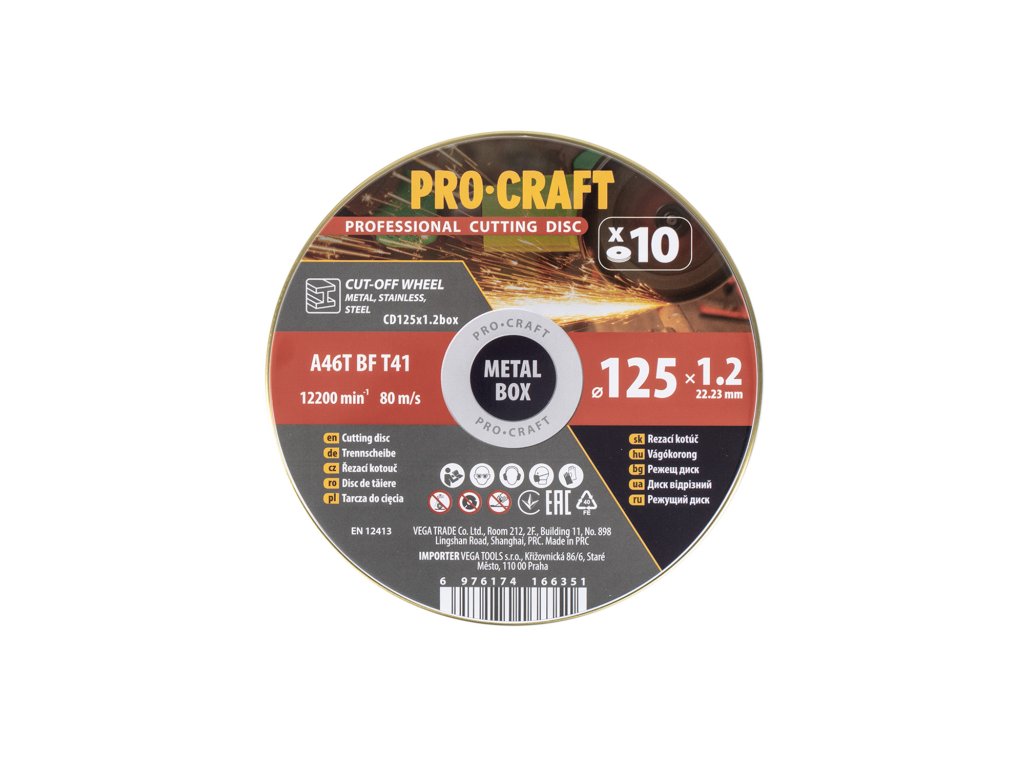Sada řezných kotoučů Procraft CD125x1.2b – 10 kusů 125 mm (tloušťka 1,2 mm)