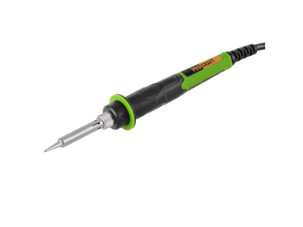Aku pájecí stanice Procraft CS60-BB představuje výkonné a mobilní řešení pro přesné pájení bez omezení napájecím kabelem. Díky akumulátorovému napájení 20 V a vysokému výkonu 60 W je vhodná nejen pro hobby použití, ale i pro náročnější servisní a montážní práce v dílně i v terénu. Stanice umožňuje regulaci teploty v rozsahu 100–500 °C, přičemž aktuální hodnota je přehledně zobrazena na digitálním displeji. Páječka je vybavena rychlovýměnnými hroty, ergonomickou rukojetí s měkčeným úchopem a praktickým ocelovým pružinovým držákem.
