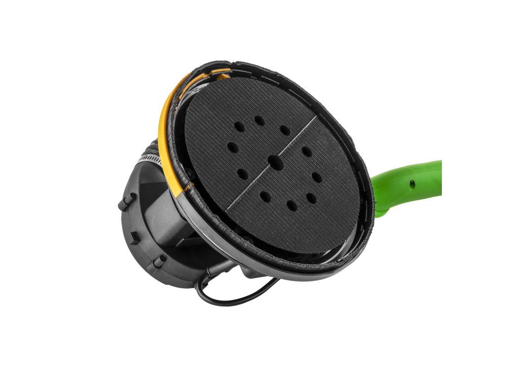 Broušení sádrokartonových stěn: Perfektní pro vyhlazování velkých ploch po tmelení spár, spojů a rohů. Díky velkému průměru kotouče a odsávání zvládá rychlou práci bez víření prachu.