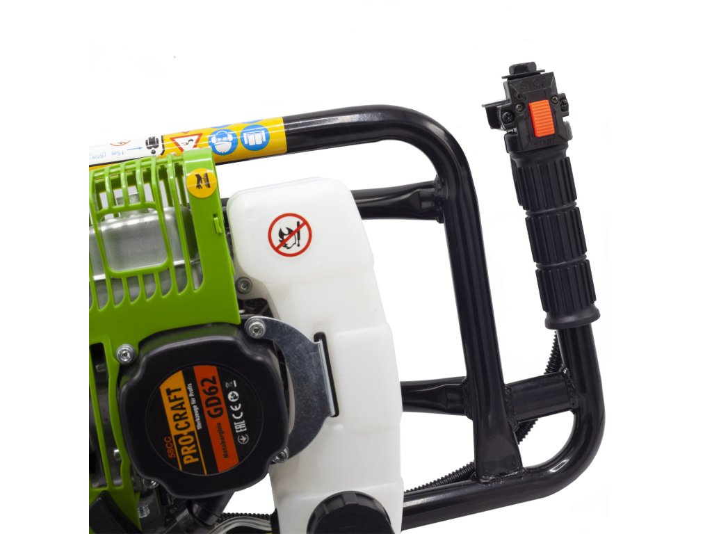 Samostatné provedení vrtáku: Zemní vrták Procraft GD62bn se prodává bez vrtáku (nástroje). Vrtací nástroje nejsou součástí balení a lze je dokoupit samostatně podle konkrétních potřeb. V nabídce jsou různé průměry vrtáků (80, 150, 200 a 250 mm), což umožňuje přizpůsobit stroj konkrétní práci – od sázení rostlin až po vrtání otvorů pro plotové sloupky.