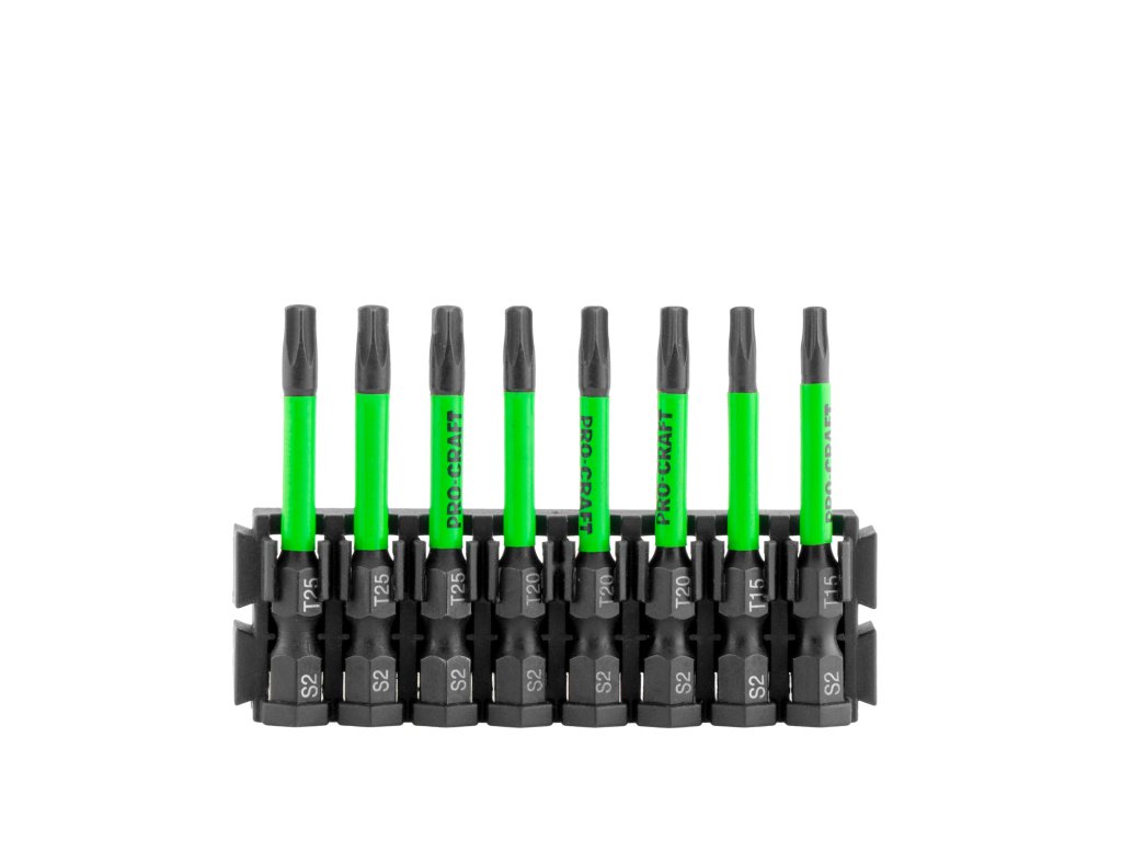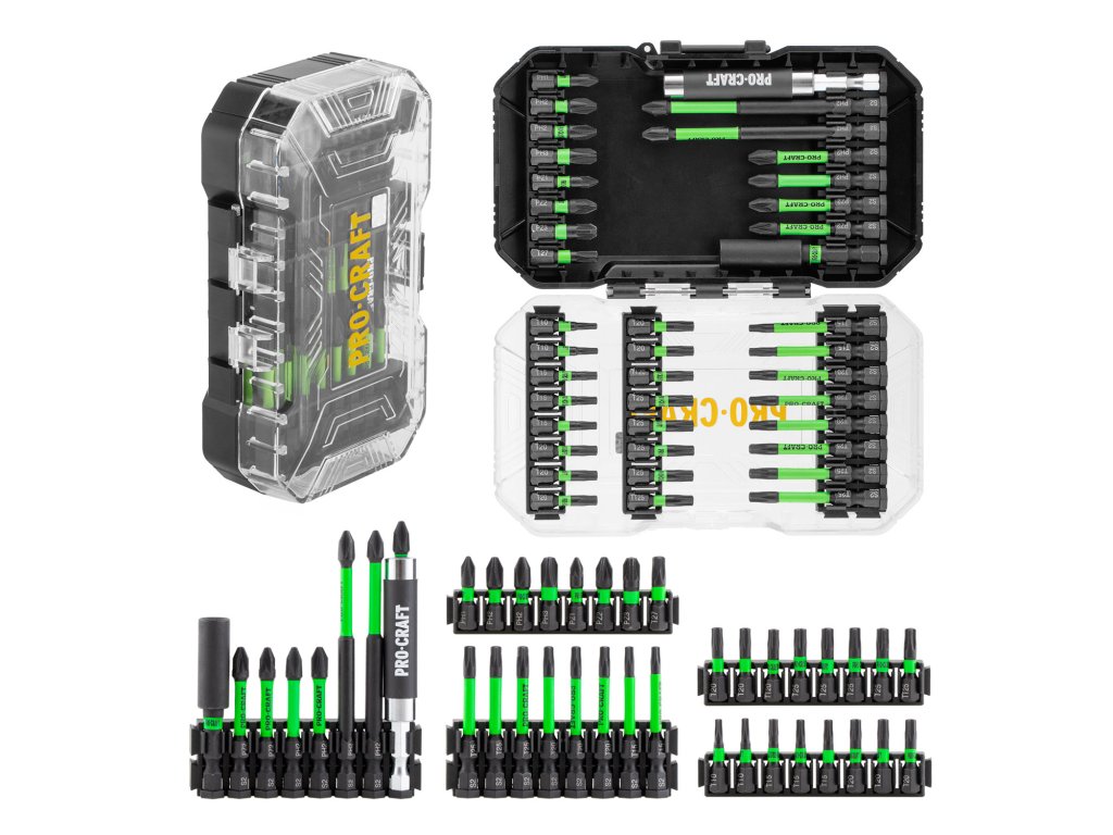 25 ks 25mm bitů: Phillips: PH1x1, PH2x2, PH3x1, Pozi: PZ1x1, PZ2x1, PZ3x1, Torx: T10x2, T15x3, T20x5, T25x4, T27x1, T30x1, T20 Security, T25 Security