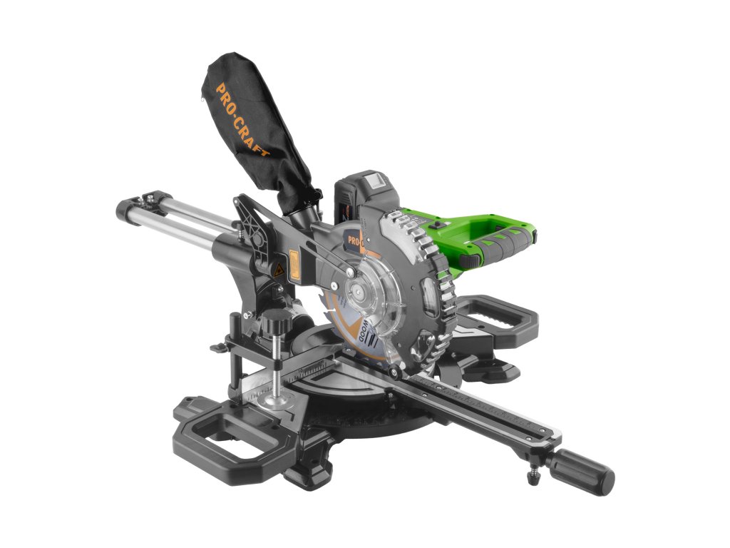 Aku pokosová pila s pojezdem Procraft PGS28bb je určena k příčnému řezání dřeva, lišt z plastu. Silný bezuhlíkový motor s vysokými otáčkami až 4200 zaručuje vysoký řezný výkon. Možnost připojení vysavače přes hadici zaručí čisté pracovní prostředí. Upevnění k pracovnímu stolu pomocí otvorů zaručuji vysokou stabilitu při práci. Vybavena čárovým laserem integrovaným ve stroji, který usnadňuje kontrolu řezu a zaručuje vysokou přesnost. Součástí dodávky je kotouč, vak na prach, montážní klíč a šrouby, svorka pro upevnění ke stolu. Balení karton. Nastavitelný úhel náklonu a úhel příčného řezu. Prodlužovací výsuvné stolky s dorazem.