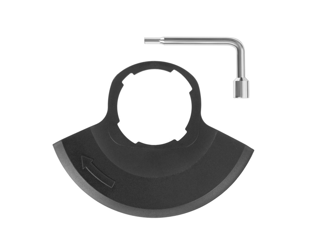 - Ochranný kryt s nožem pro zastřižení struny: Integrovaný ocelový nůž na okraji krytu automaticky zkracuje strunu na optimální délku, čímž zajišťuje efektivní sekání a zabraňuje jejímu nadměrnému opotřebení. Kryt zároveň chrání uživatele před odletující trávou a kamínky.