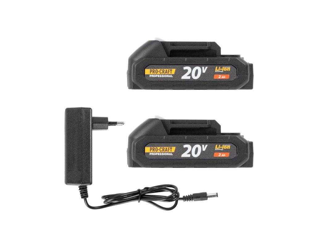 - 2 baterie 20V 2Ah pro dlouhodobý provoz bez potřeby častého nabíjení.