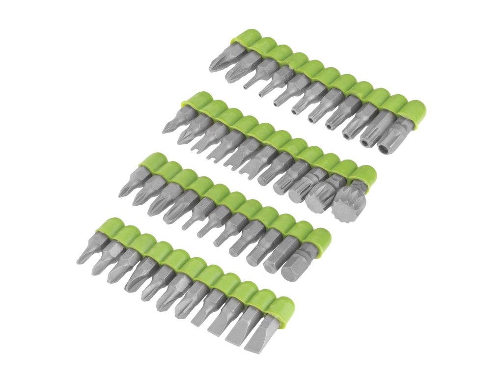 Kvalitní materiál: hlavice a klíče z odolné karbonové oceli, bity z kvalitní chrom-vanadiové (CR-V) oceli pro maximální životnost.