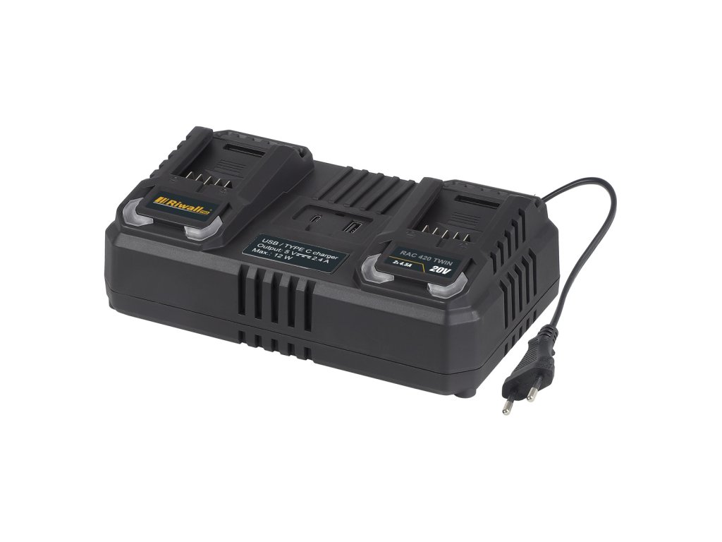 Pokud pracujete najednou s více kusy akumulátorové techniky systému Riwall PRO 20V a nechcete ztrácet čas zbytečným čekáním, nabíječka RAC 420 TWIN je přesně pro Vás. Tato dvojitá rychlonabíječka umožňuje nabíjet dvě 20V baterie současně, a to rychle, bezpečně a s maximální účinností. Jednosušše ideální volba pro uživatele 20V aku programu Riwall PRO, kteří chtějí maximální výkon, rychlost a efektivitu bez kompromisů.