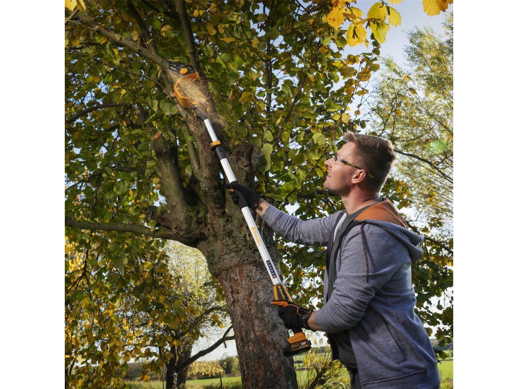 možnost připojit k teleskopické rukojeti (obj. č. RACC00099) s rozsahem až 1,73 m a ořezávat větve i ve velkých výškách bez nutnosti použití žebříku