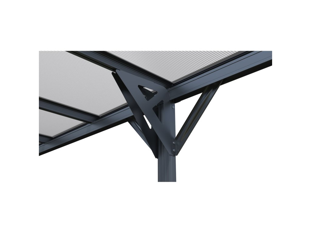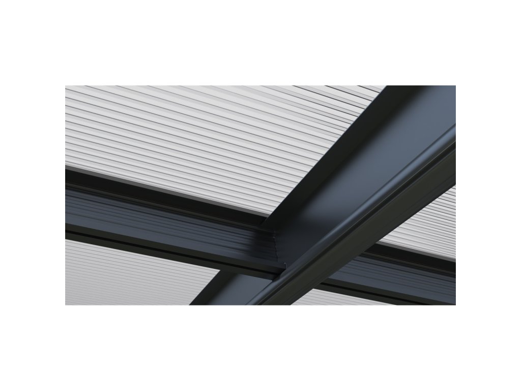 Nosnou část tvoří hliníkový rám o tloušťce 1,1 mm s povrchovou úpravou práškovým lakováním, která zaručuje vysokou odolnost a dlouhou životnost. Střešní panely jsou vyrobeny z 6mm dvoustěnného polykarbonátu s UV ochranou, který spolehlivě chrání před slunečním zářením i povětrnostními vlivy. Ocelové prvky z pozinkované oceli o tloušťce 1,0–3,0 mm jsou rovněž opatřeny práškovým lakem pro maximální odolnost vůči korozi.
