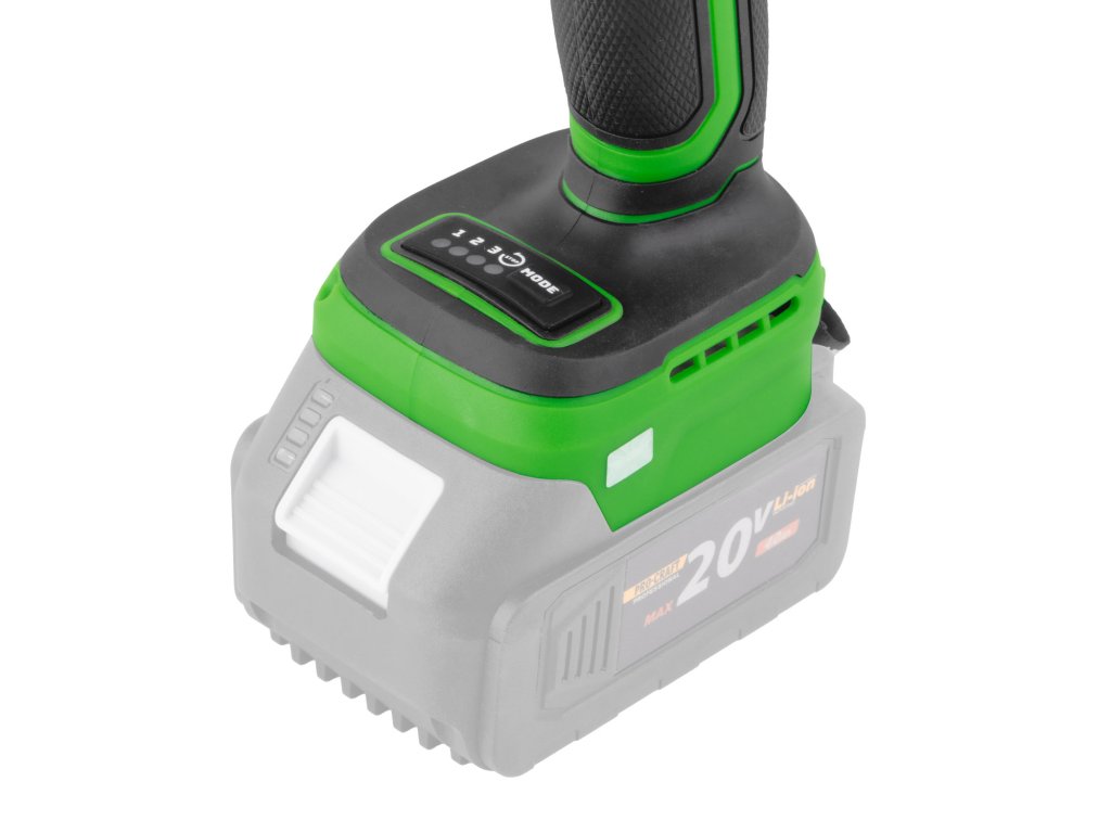 2× akumulátor 20V 4Ah: Silné baterie zajišťují dlouhou dobu provozu bez přerušování práce. Ideální i pro náročné celodenní montáže.