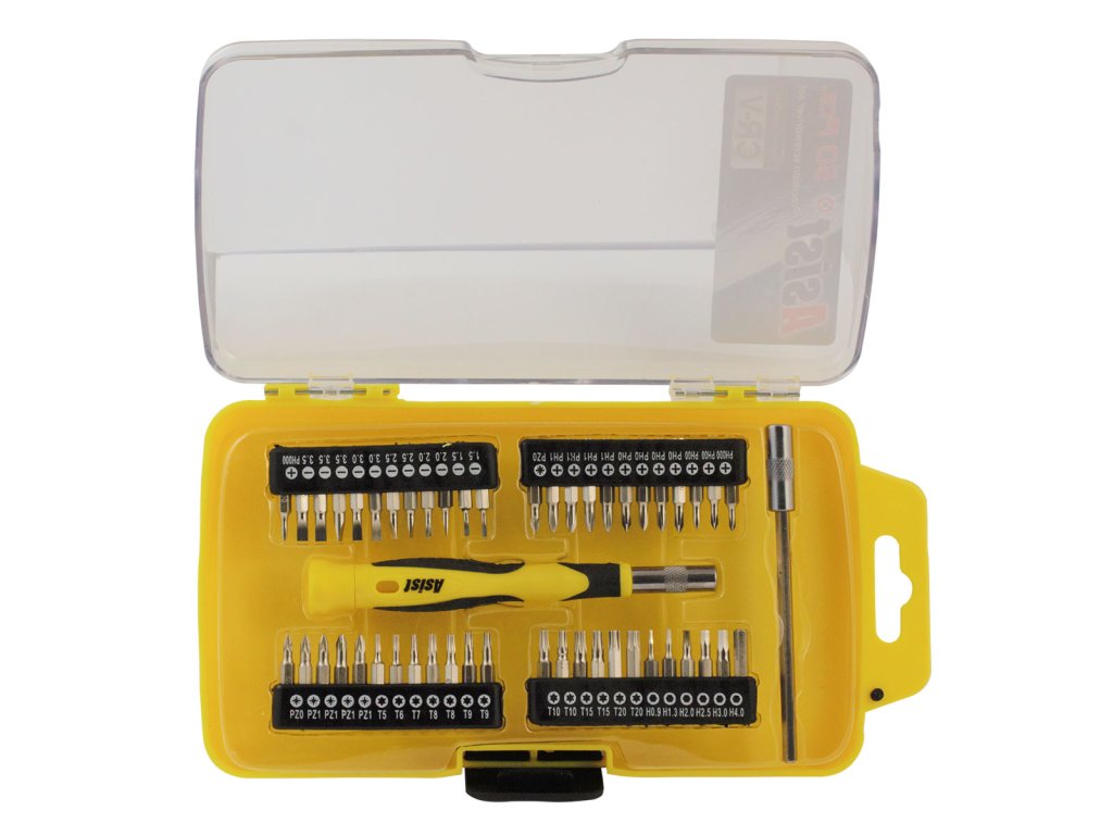Sada bitů s nástavci 50 ks, CR-V ASIST 33-2009 je kompaktní, přesná a odolná volba pro jemnou mechaniku, elektroniku i každodenní opravy v domácnosti i dílně. Bity z oceli Chrome-Vanadium (CR-V) vydrží vysoké zatížení, drží tvar profilu a v kombinaci s ergonomickou rukojetí a prodlužovacím nástavcem si poradí i se šrouby v hůře přístupných místech. Vše je přehledně uloženo v pevném, snadno přenosném boxu.