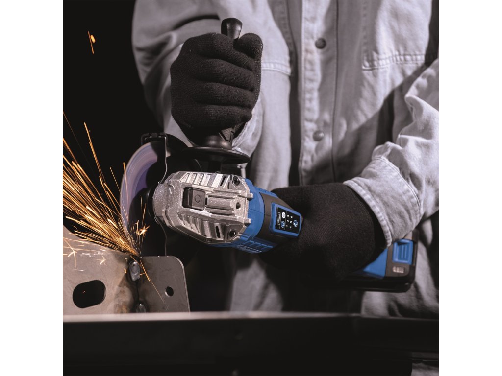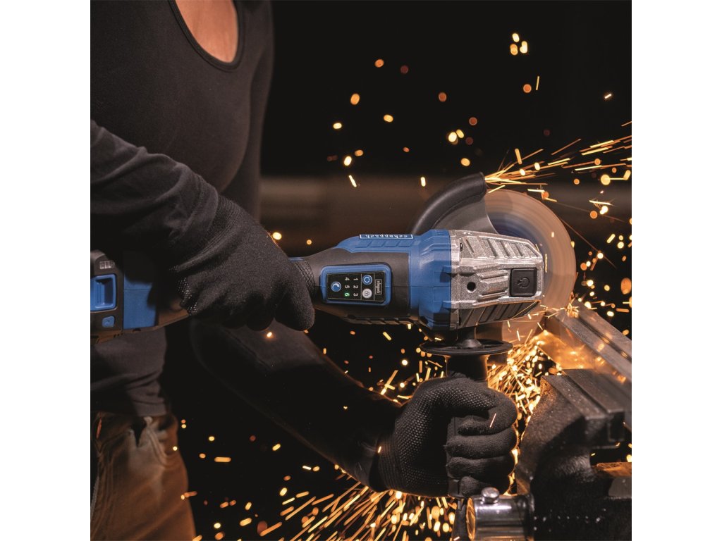 Bruska umožňuje pomocí tlačítek nastavení otáček v šesti stupních v rozsahu 3 000 až 10 000 ot/min, což zaručuje přesné přizpůsobení danému materiálu a aplikaci. Přední rukojeť lze nastavit do tří poloh a je vybavena integrovaným držákem na montážní klíč, což zvyšuje komfort a rychlost při výměně kotouče. Snadnou výměnu nástroje zajišťuje praktická aretace vřetene. Tento konrétní model disponuje standardním upínáním M14 a je určen pro kotouče u průměru 125 mm. Stroj se dodává bez baterie a nabíječky.