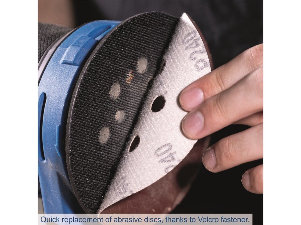 Bruska je navržena pro běžná brusné kotouče o průměru 125 mm, které snadno vyměníte díky praktickému systému na suchý zip. Variabilní regulace otáček od 6000 do 24 000 za minutu umožňuje přizpůsobit výkon konkrétní aplikaci, přičemž rychlost lze jednoduše nastavit pomocí otočného kolečka. Funkce Soft start zajišťuje plynulý rozběh bez trhání, což přispívá k preciznějšímu broušení a delší životnosti stroje. Díky nízké konstrukční výšce je možné dosáhnout na těžko dostupná místa s maximální přesností. Práce je navíc výrazně méně prašná díky integrovanému systému odsávání, který umožňuje připojení k prachovému sáčku nebo externímu odsávacímu zařízení. Odolnost stroje zvyšuje prachotěsný spínač, který chrání vnitřní mechanismus před znečištěním. Stroj se dodává bez baterie a nabíječky.