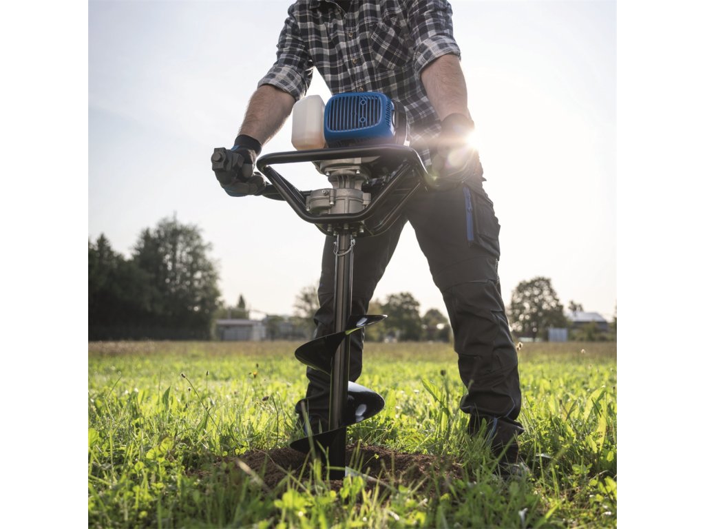EB 2000 - půdní vrtákPokud chcete postavit plot, ohradu, základy pro zahradní domek nebo třeba vysázet větší množství stromků, můžete si velmi usnadnit práci použitím půdního vrtáku. Není problém zkrátit dobu hloubení děr až o 80% a ušetřit si tak i spoustu zbytečného úsilí. Správný nástroj by pro Vás mohl být model EB 2000. Regulace otáček i vypínač jsou pohromadě na pravé rukojeti a spolu s příznivou hmotností dělají stroj velmi pohodlný na ovládání. K tomu přispívá i moderní centrální uložení motoru uprostřed rámu. Stroj je tak výborně vyvážen a i při vyšších otáčkách se ovládá mnohem lépe, než starší konstrukce s motorem uloženým excentricky mimo rám. Robustní rám chrání nejenom Vás, ale i stroj samotný při jeho položení na zem. Srdcem stroje je silný motor s odstředivou spojkou a elektronickým zapalováním pro snadné starty a dostatečně objemnou nádrží. Má membránový karburátor, takže z něj nevyteče palivo ani při sebevětším náklonu. Stroj se dodává včetně 3 půdních vrtáků o průměru 100, 150 a 200 mm.Podmínkou výrobce na uplatnnění prodloužené záruky 48 měsíců je placený servis stroje ve 24 měsíci od zakoupení v autorizovaném servisu Scheppach.