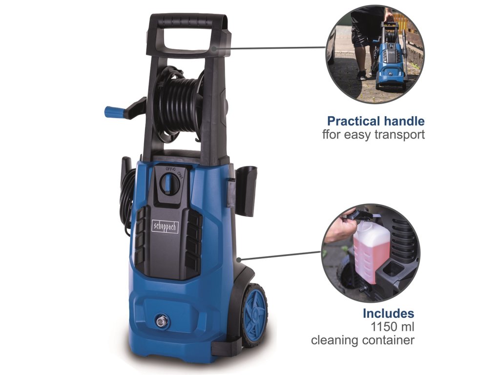 HCE 2800 - tlaková myčka 180 barů s příslušenstvímTlaková myčka Scheppach HCE 2800 je velmi výkonná myčka, se kterou, mimo všech běžných úkolů, lehce zvládnete i většinu náročnějších úklidových prací. Díky standardně dodávanému příslušenství se můžete pustit do jakékoliv práce kolem domu, firmy, dílny nebo garáže. Bez problémů umyjete své auto, terénní čtyřkolku, motocykl, zahradní techniku, traktor nebo třeba loď. S vhodnými nástavci vyčistíte zídku, verandu, příjezdovou cestu nebo spáry v zámkové dlažbě.