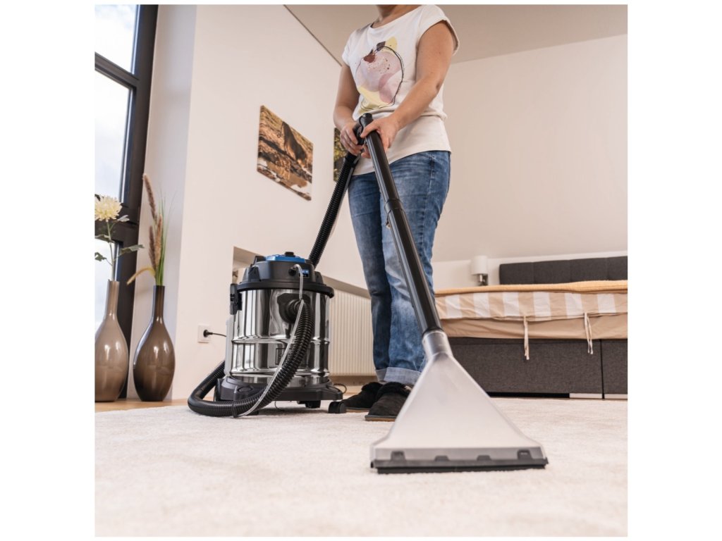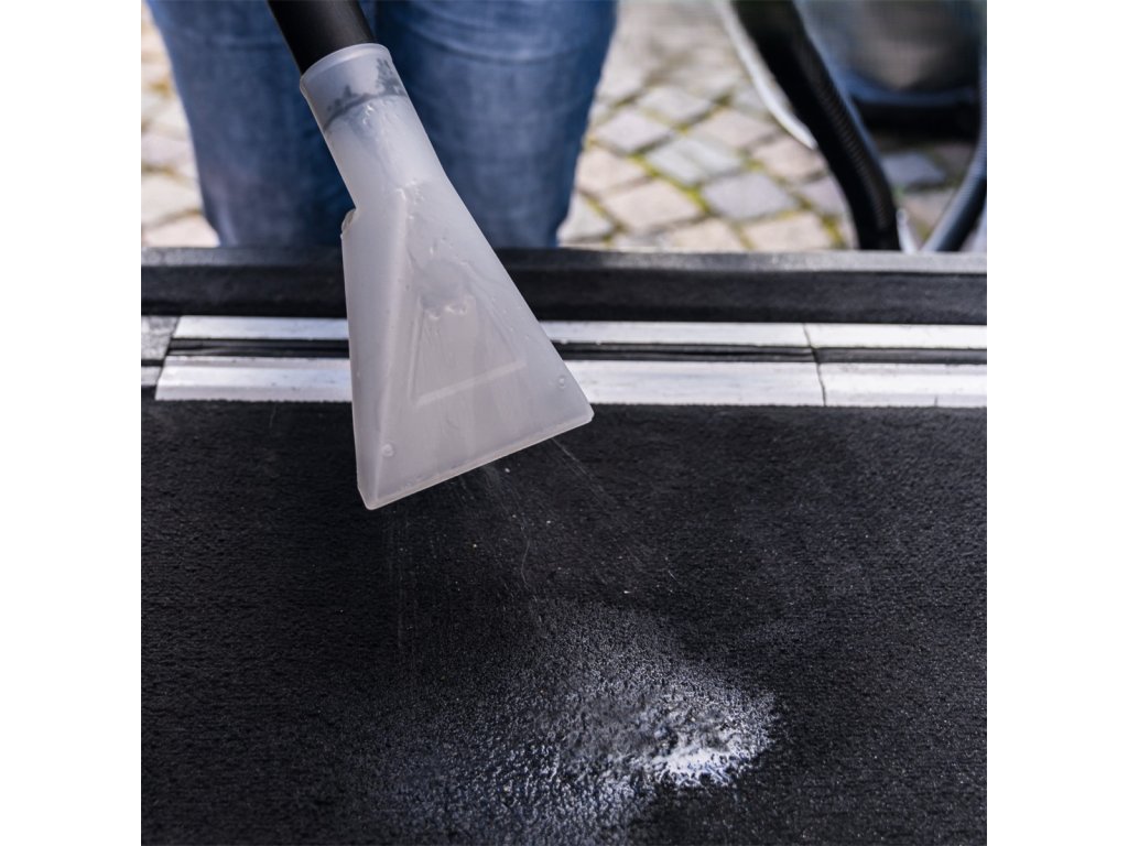 Zařízení je vybaveno praktickou hadicí, která umožňuje snadné stříkání i odsávání a odnímatelnou nádržkou na vodu a čisticí prostředek s kapacitou 3,5 litru. Odpadní voda je shromažďována v odolné nerezové nádrži o objemu 20 litrů. Ta má boční uzávěry a praktickou výpusť na špinavou vodu. Výkonný motor o síle 1600 W poskytuje dostatek energie i pro náročné úkoly. Pro pohodlnou práci má stroj pracovní dosah až 9,5 m, a to díky 2 m sací hadici s otočným adaptérem a 7,5 m přívodnímu kabelu. Integrovaný držák na kabel a příslušenství zajišťuje pořádek během práce i skladování.
