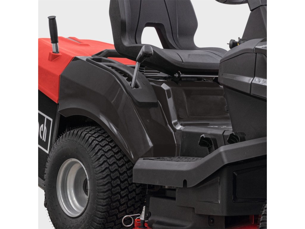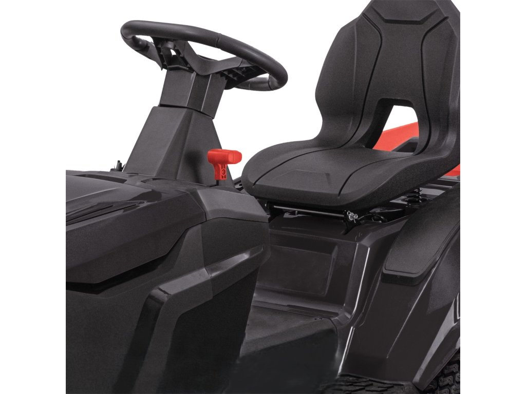 Traktor je vybaven odolnou hydrostatickou převodovkou, která zajišťuje maximálně komfortní ovládání. Rychlost i směr jízdy nastavujete plynule bez nutnosti řazení, takže práce je příjemná i na členitějším pozemku nebo při objíždění stromů a záhonů. Plynulá regulace rychlosti umožňuje perfektní přizpůsobení tempa sečení – vpřed až 10 km/h a vzad až 6 km/h. Výsledkem je hladká jízda, snadné manévrování a dlouhá životnost převodového systému.