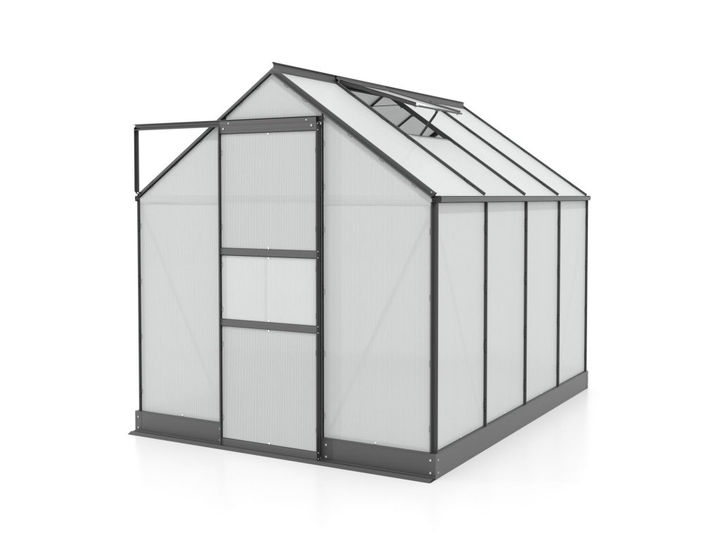 Obsahem balení jsou jednokřídlé posuvné dveře (š x v otvoru = 0,61 x 1,74 m), AL profily, prosklení, pozinkovaná ocelová základna, 1x střešní ventilační okénko s manuálním otevíráním, veškerý spojovací materiál. Ke skleníku je možné dokoupit řadu nadstandardního příslušenství - poličky, regály, další větrací střešní okno, automatický otvírač, okapové sady, teploměry, vlhkoměry, zavlažovací zařízení, elektrické odporové vytápění půdy.