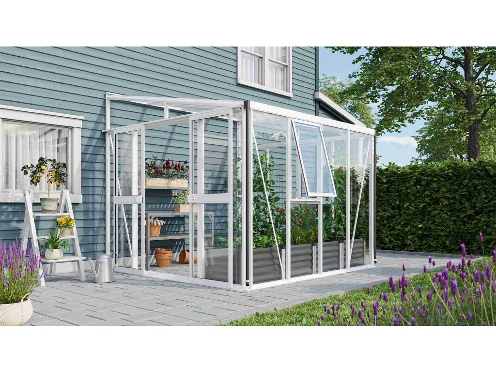 Skleník je určen k montáži ke zdi – zadní stěna není součástí konstrukce.