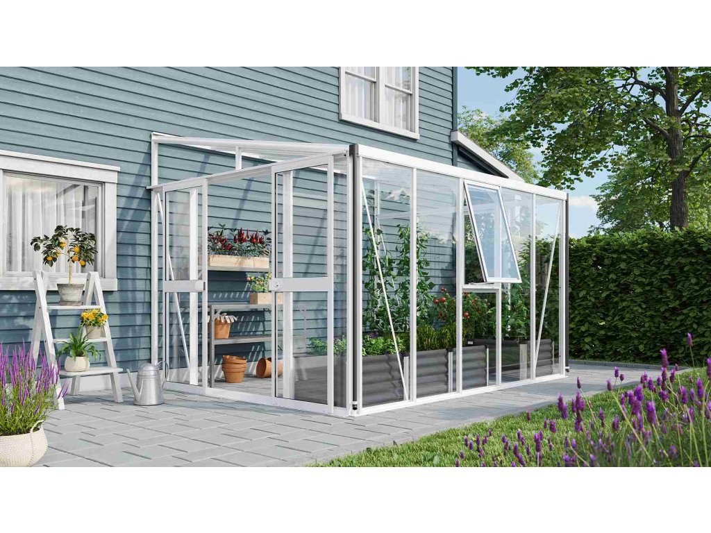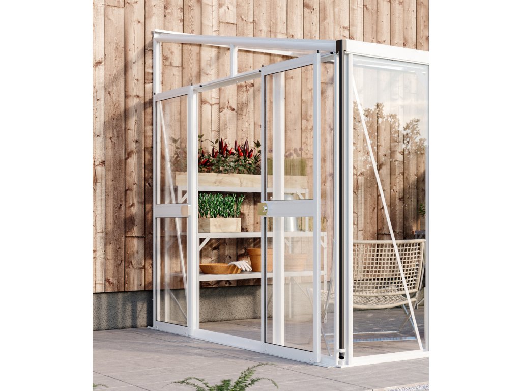 Skleník je určen k montáži ke zdi – zadní stěna není součástí konstrukce.