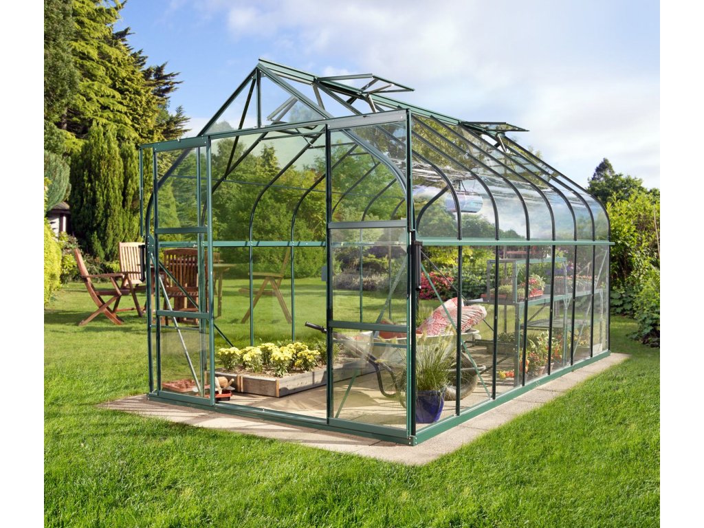 skleník VITAVIA DIANA 11500 čiré sklo 3 mm zelený LG4241 + základna VITAVIA DIANA 11500 zelená LG4255