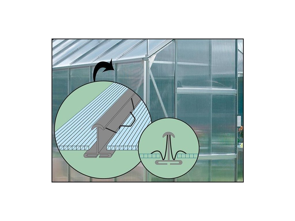 Polykarbonát - prémiový německý polykarbonát 4 mm s UV filtrem (na slunci a mrazu nekřehne ani nežloutne). Smluvní prodloužená záruka 10 let na nerozbitnost polykarbonátu krupobitím je u skleníků od LANIT PLASTU samozřejmostí.