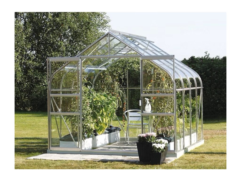 Skleníky řady DIANA jsou zařazeny do kategorie PREMIUM - skleník je vyrobený značkovým výrobcem z Velké Británie. Skleník je vyrobený z eloxovaných hliníkových profilů, prosklení je z kaleného čirého skla síly 3 mm. Čiré sklo zajišťuje výbornou světelnou propustnost, takže do skleníku je krásně vidět ze všech stran a kdykoliv se můžete pokochat pohledem na pěstovanou zeleninu nebo květiny. Prosklení je do hliníkových profilů kotveno pomocí ocelových sponek.