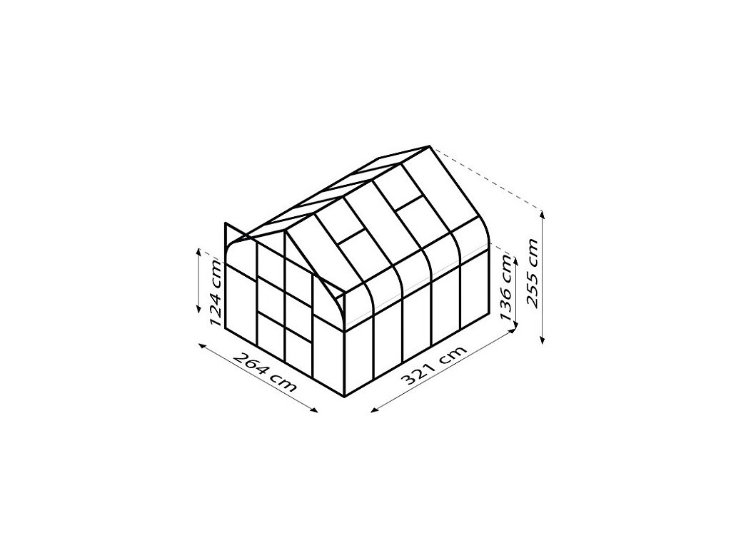Skleníky řady DIANA jsou zařazeny do kategorie PREMIUM - skleník je vyrobený značkovým výrobcem z Velké Británie. Skleník je vyrobený z eloxovaných hliníkových profilů. Prosklení je z tepelně-izolačních komůrkových polykarbonátových desek síly 4 mm. Prosklení je do hliníkových profilů kotveno pomocí ocelových sponek.