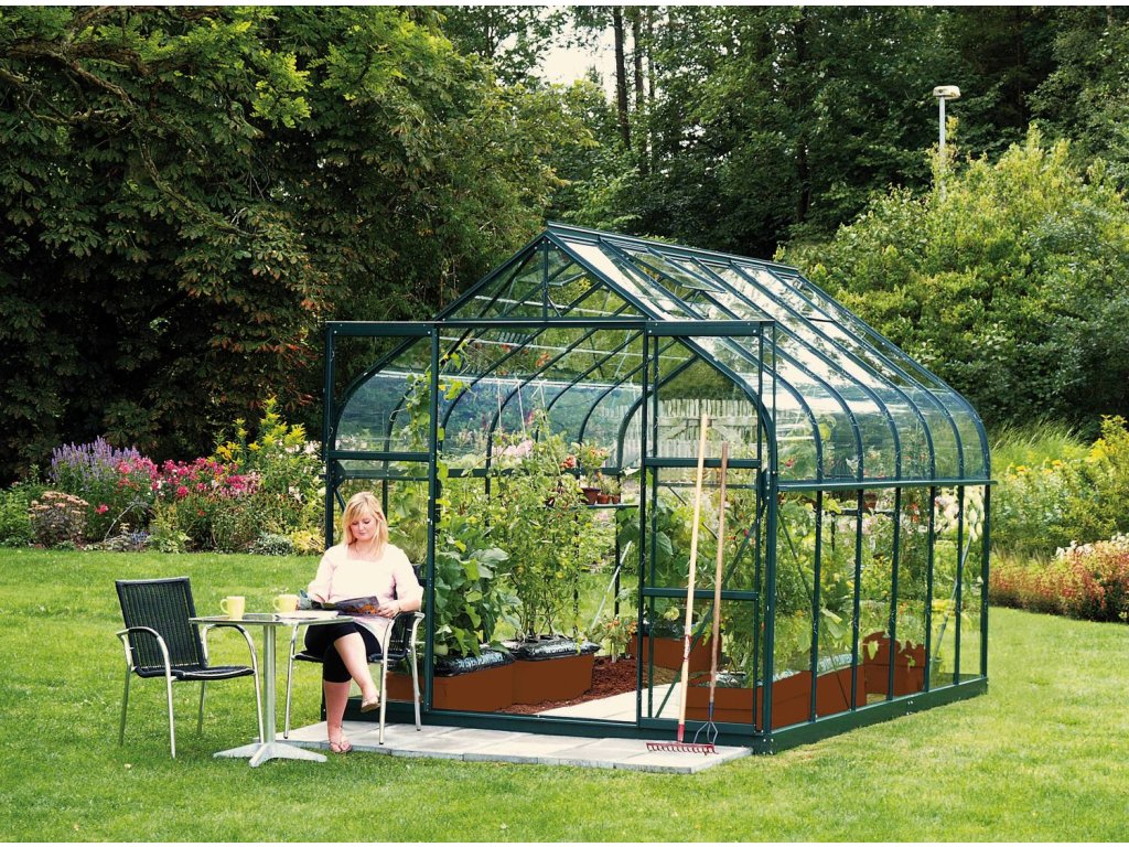 skleník VITAVIA DIANA 9900 čiré sklo 3 mm zelený LG4235 + základna VITAVIA DIANA 9900 zelená LG4252